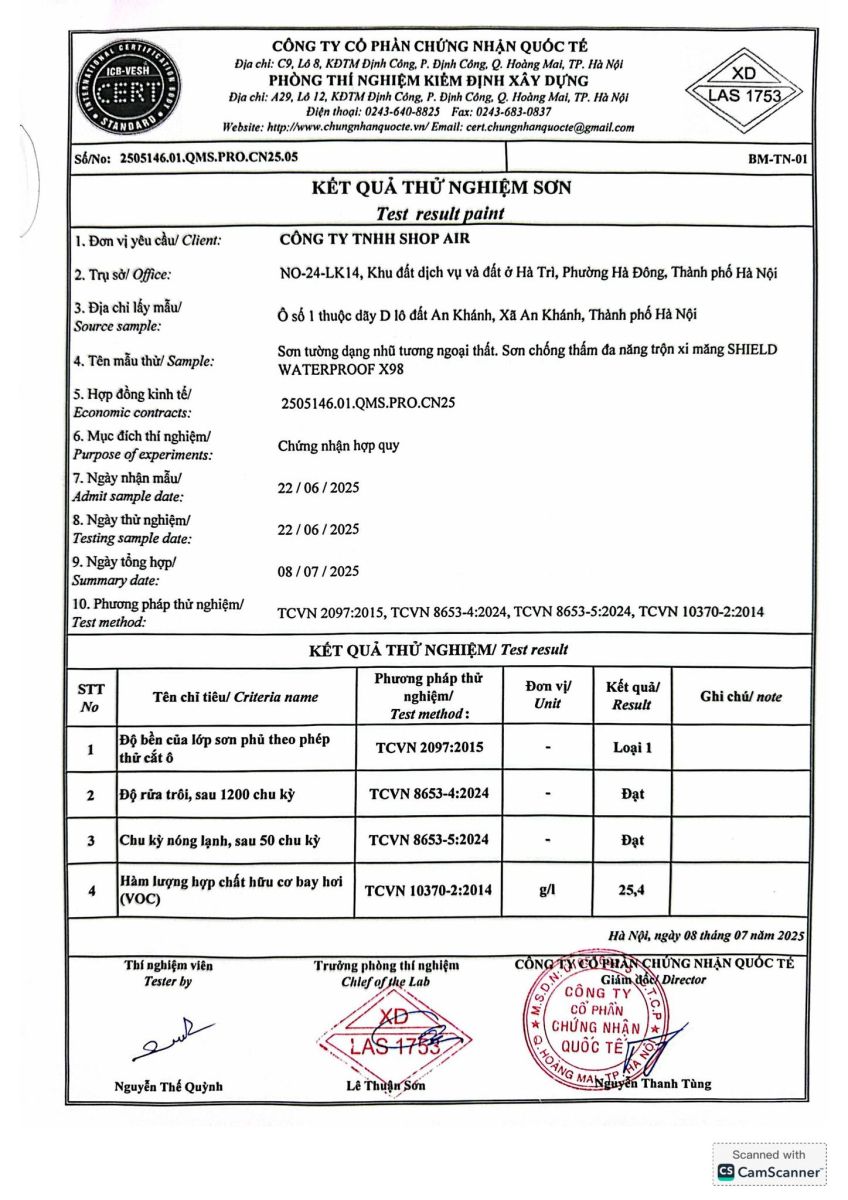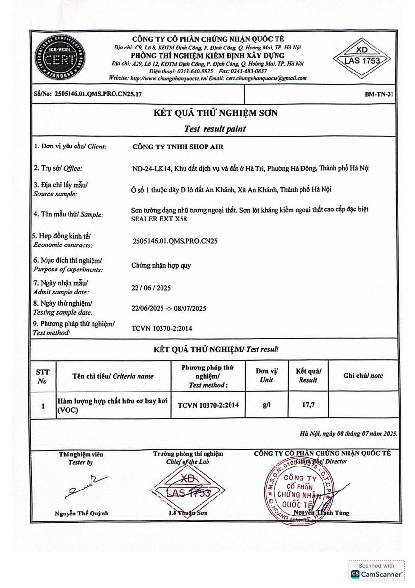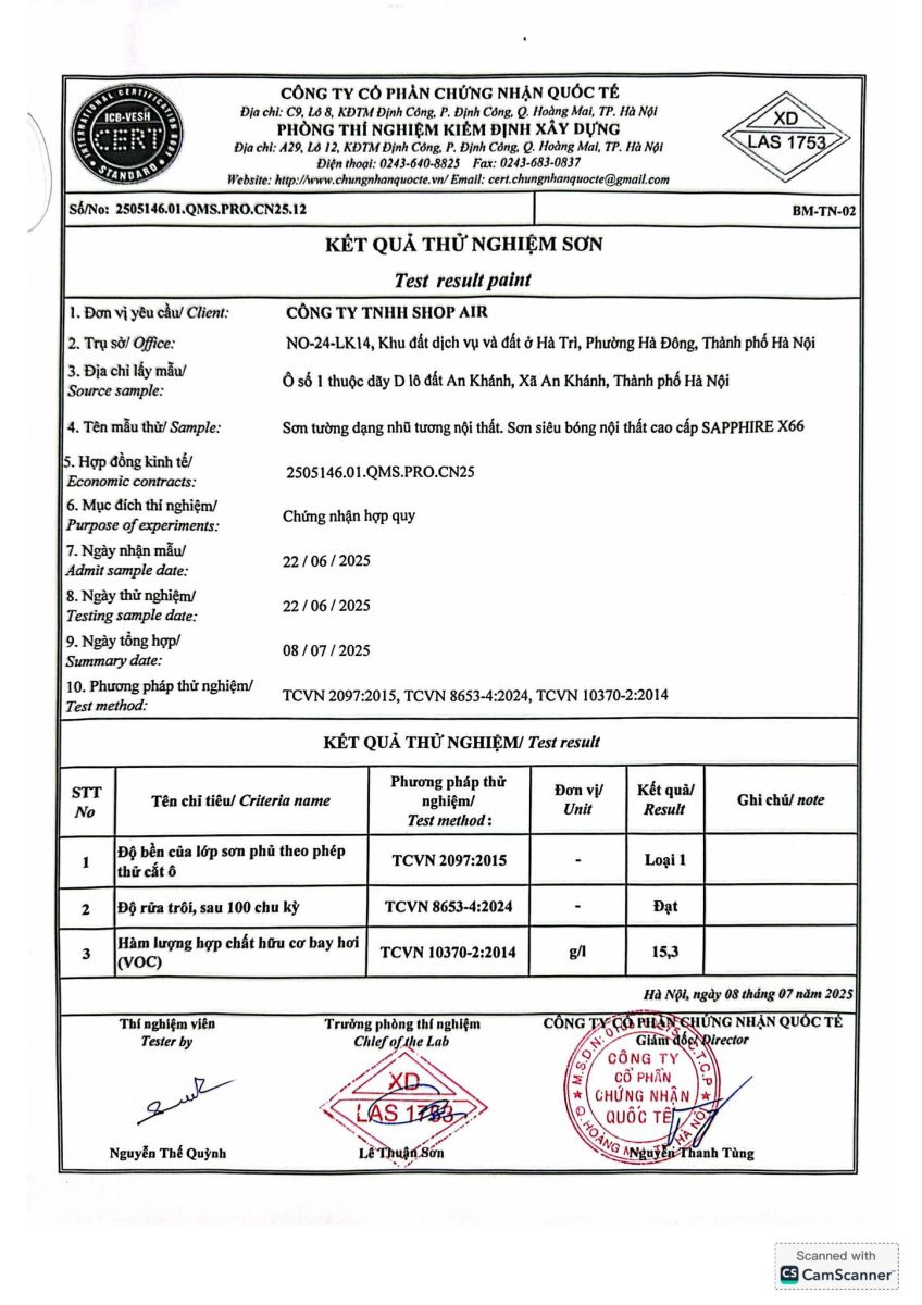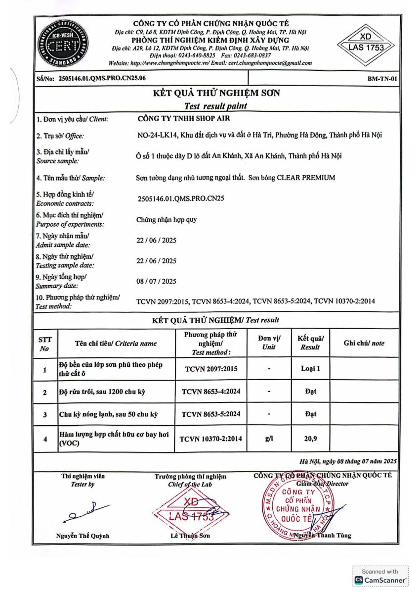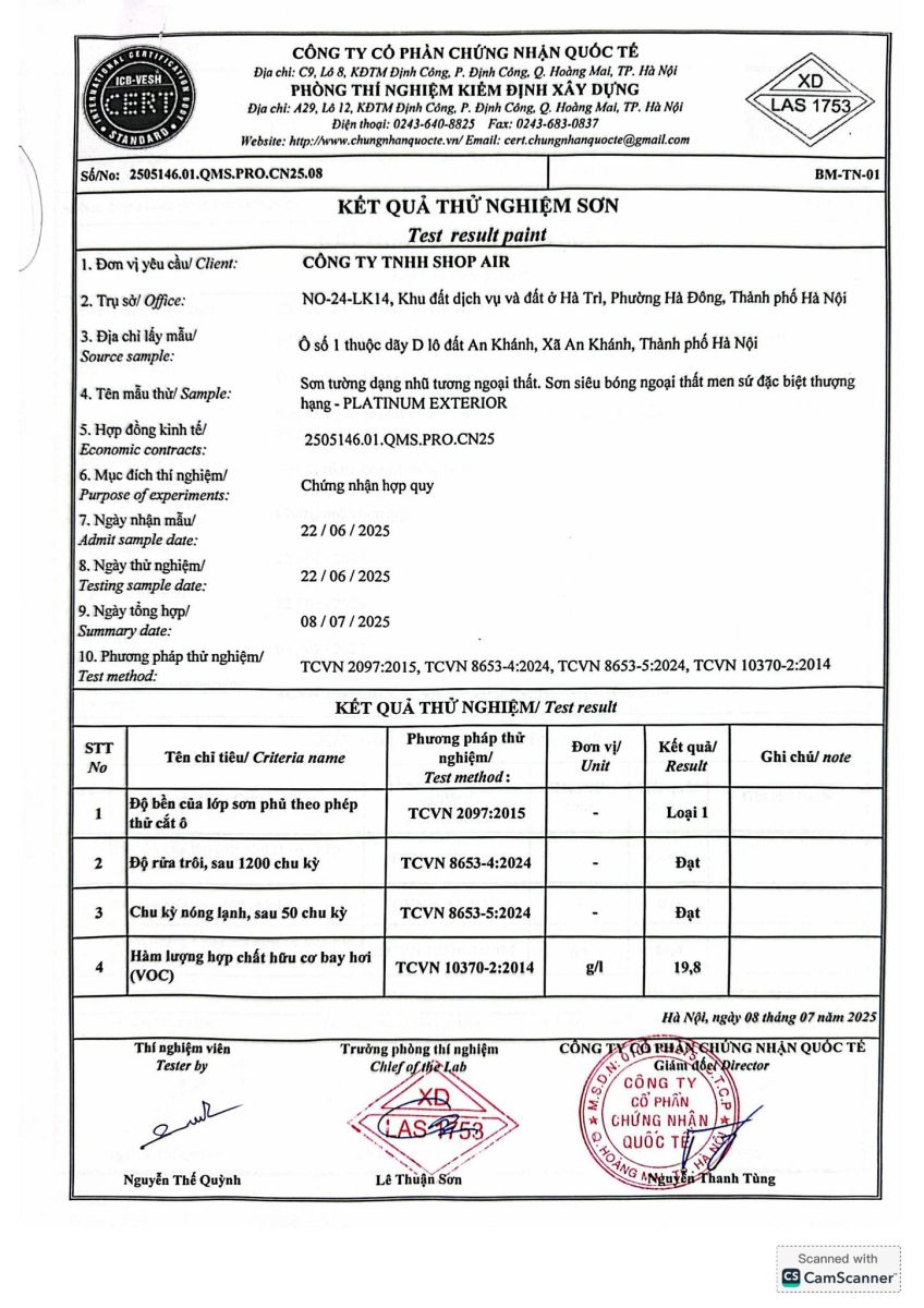 Các loại sơn này đã được kiểm định và chứng nhận chất lượng bởi các tổ chức uy tín, đảm bảo tuân thủ các tiêu chuẩn khắt khe. Với chứng chỉ ISO 1900:2015 và QCVN 16:2023/BXD, người tiêu dùng hoàn toàn có thể yên tâm về độ an toàn và hiệu quả sử dụng.