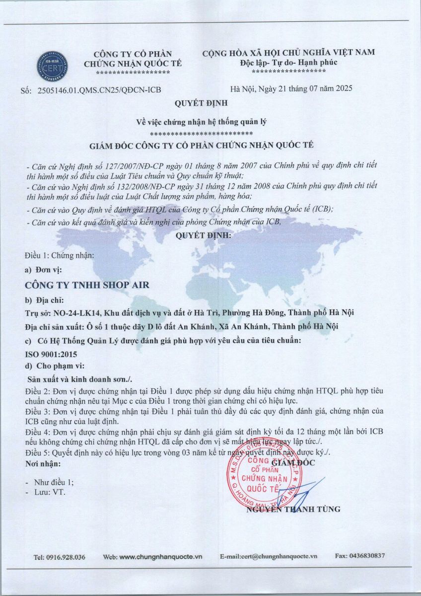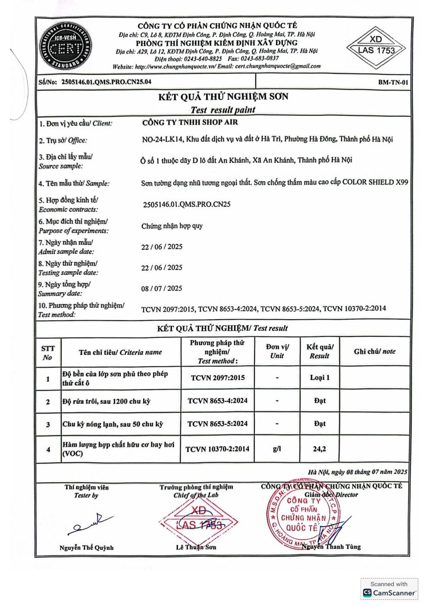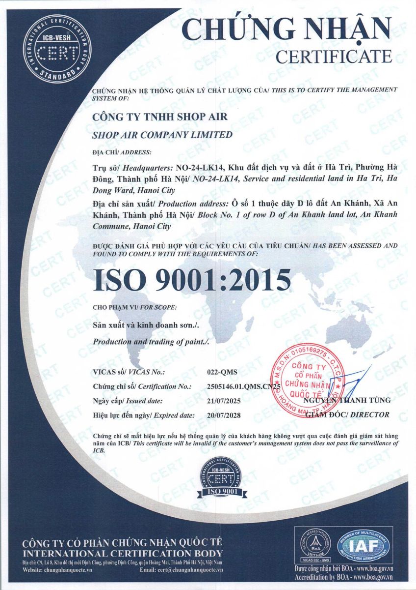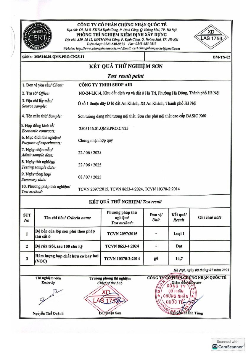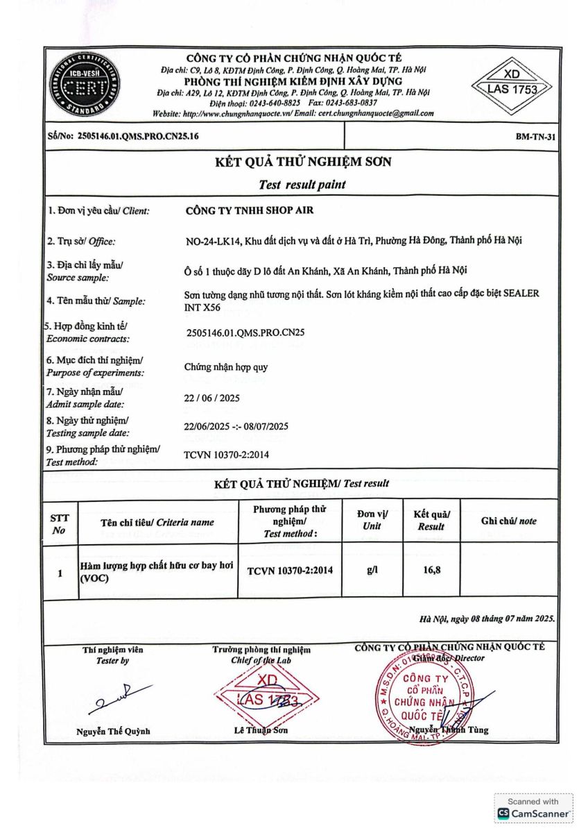 Các loại sơn này đã được kiểm định và chứng nhận chất lượng bởi các tổ chức uy tín, đảm bảo tuân thủ các tiêu chuẩn khắt khe. Với chứng chỉ ISO 1900:2015 và QCVN 16:2023/BXD, người tiêu dùng hoàn toàn có thể yên tâm về độ an toàn và hiệu quả sử dụng.